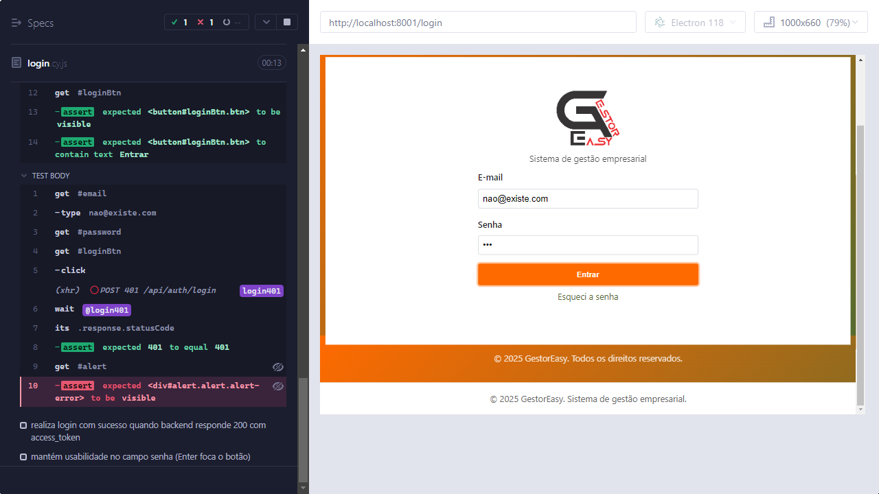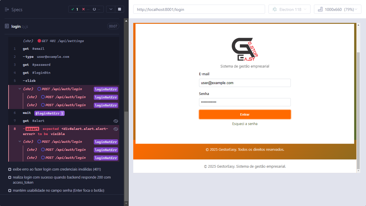 Login тАФ fluxo completo -- exibe mensagem de erro quando h├б falha de ...